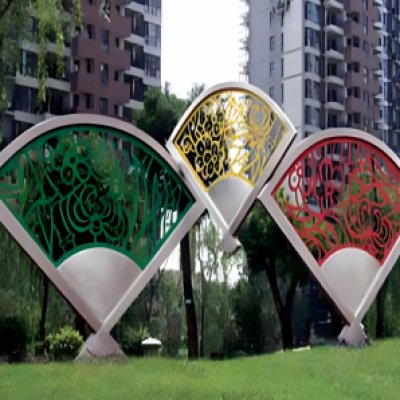 园林中的创意金属镂空折扇雕塑,以其精细的镂空工艺和优雅的设计,成为园林中的一道独特风景。这种雕塑在光线的照射下产生美丽的光影效果,为园林增添了一种神秘和艺术的氛围。